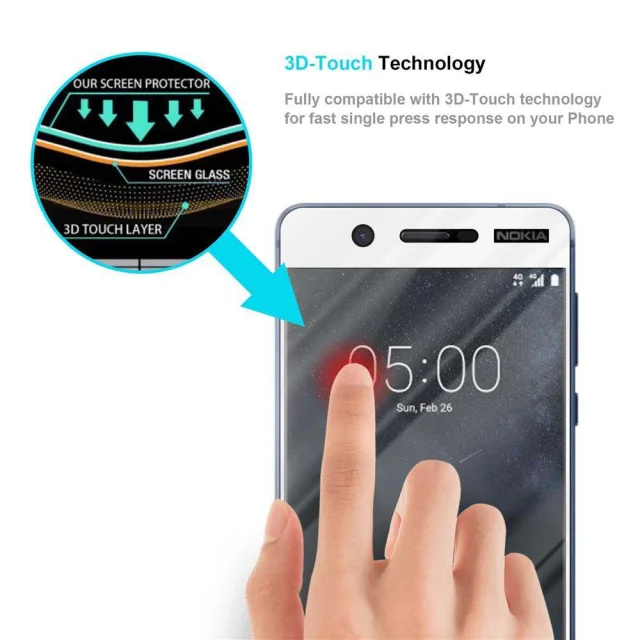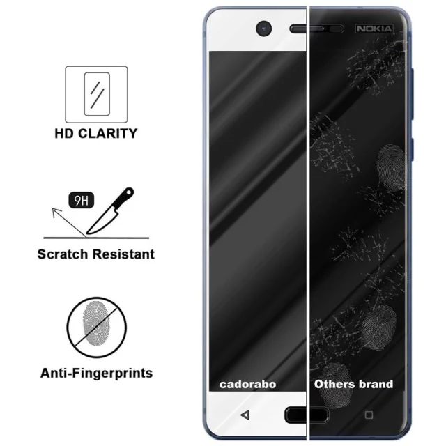 CADORABO Nokia 5 2017 - Zaščitna folija za transparentna z belo - Zaščitno steklo s kaljenim zaslonom s trdoto 9H in 3D dotikom