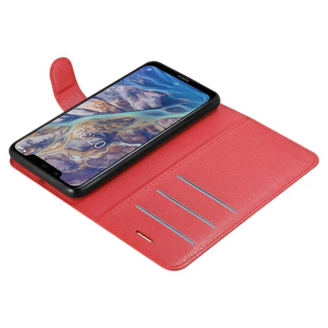 CADORABO Nokia 7.1 PLUS/X7 v rdeče sladkorno jabolko - Zaščitni ovitek z magnetnim zapiranjem, stoječo funkcijo in režo za kartice