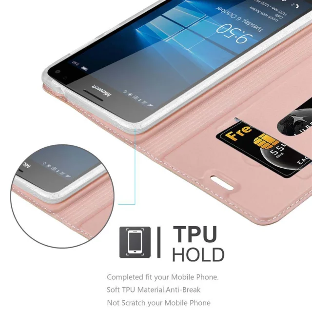 CADORABO Nokia Lumia 950 XL v klasična rožnata zlata - Zaščitni ovitek z magnetnim zapiranjem, stoječo funkcijo in režo za kartice