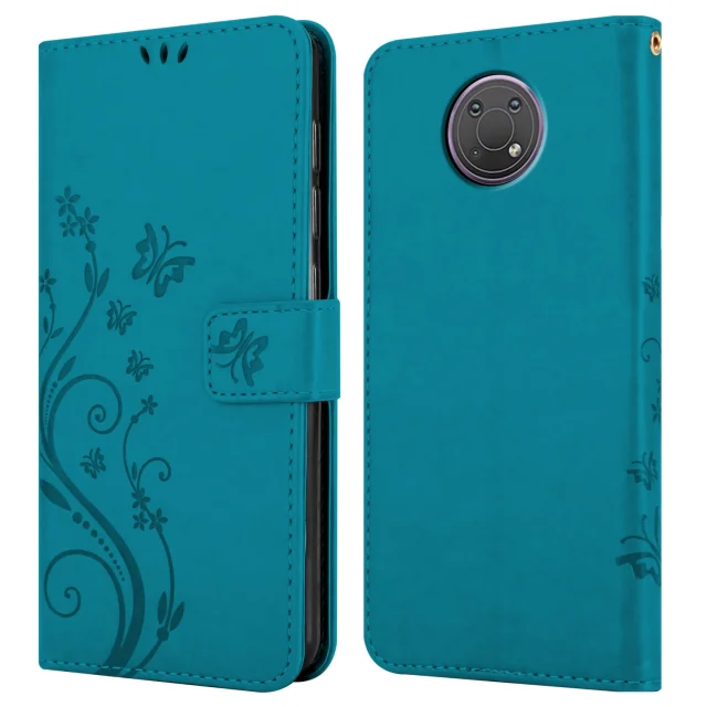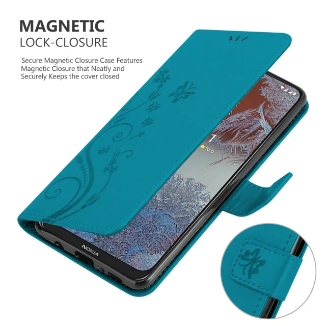 CADORABO Nokia v cvetlični modri barvi - zaščitni pokrov v oblikovanju cvetja z magnetnim zapiranjem, stoječimi funkcijami in režami za kartice