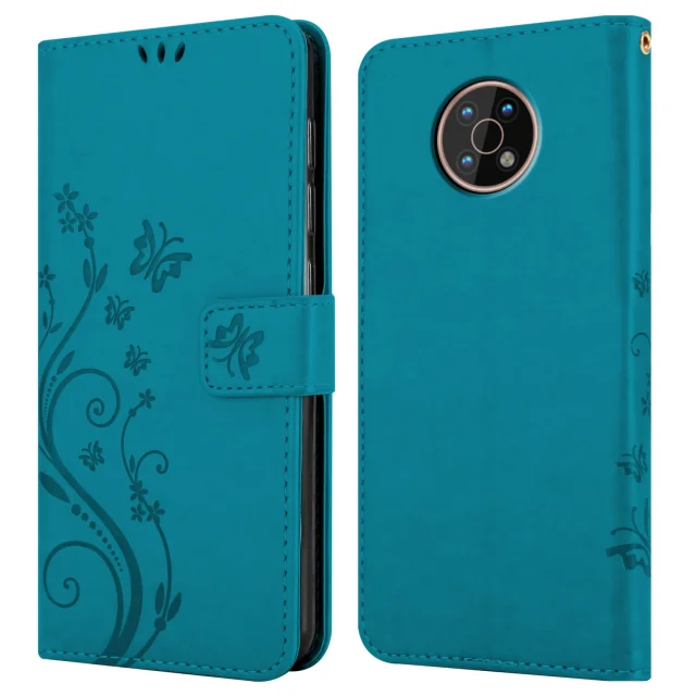 CADORABO Nokia v cvetlični modri barvi - zaščitni pokrov v oblikovanju cvetja z magnetnim zapiranjem, stoječimi funkcijami in režami za kartice