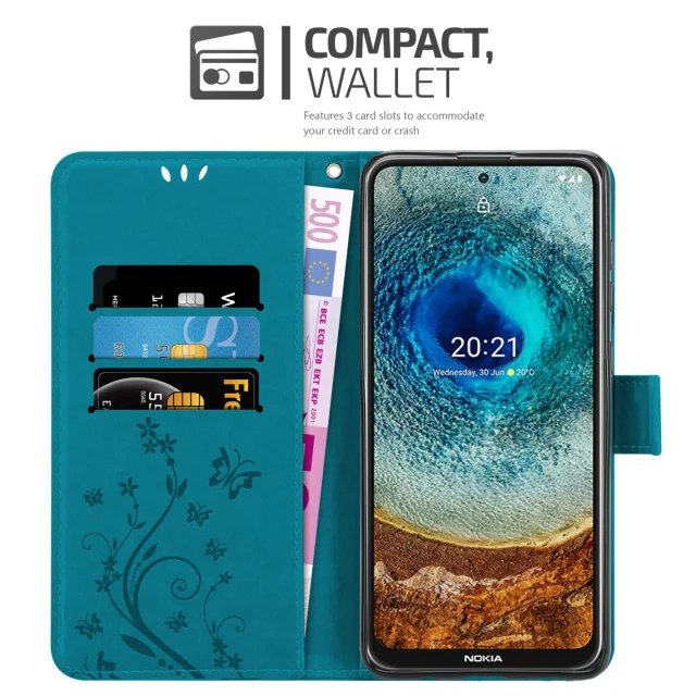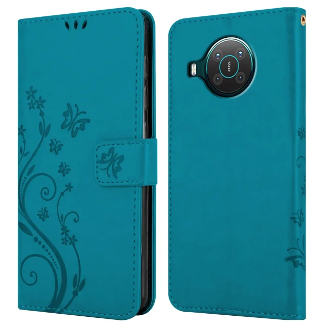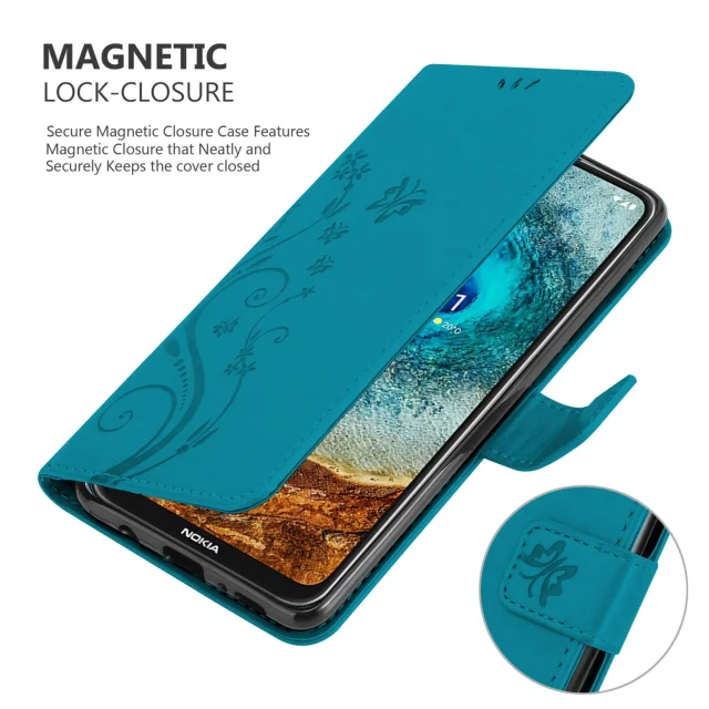 CADORABO Nokia v cvetlični modri barvi - zaščitni pokrov v oblikovanju cvetja z magnetnim zapiranjem, stoječimi funkcijami in režami za kartice