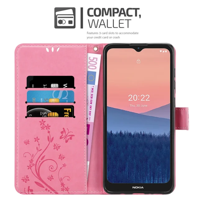 CADORABO Nokia v cvetlični roza barvi - zaščitni pokrov v oblikovanju cvetja z magnetnim zapiranjem, stoječimi funkcijami in režami za kartice