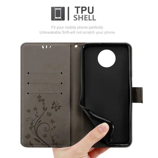 CADORABO Nokia v cvetlični sivi barvi - zaščitni pokrov v oblikovanju cvetja z magnetnim zapiranjem, stoječimi funkcijami in režami za kartice
