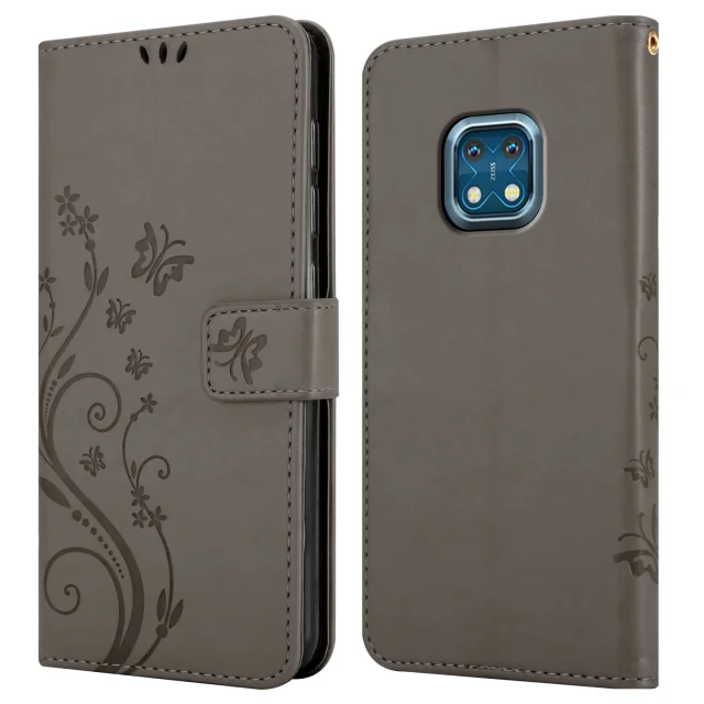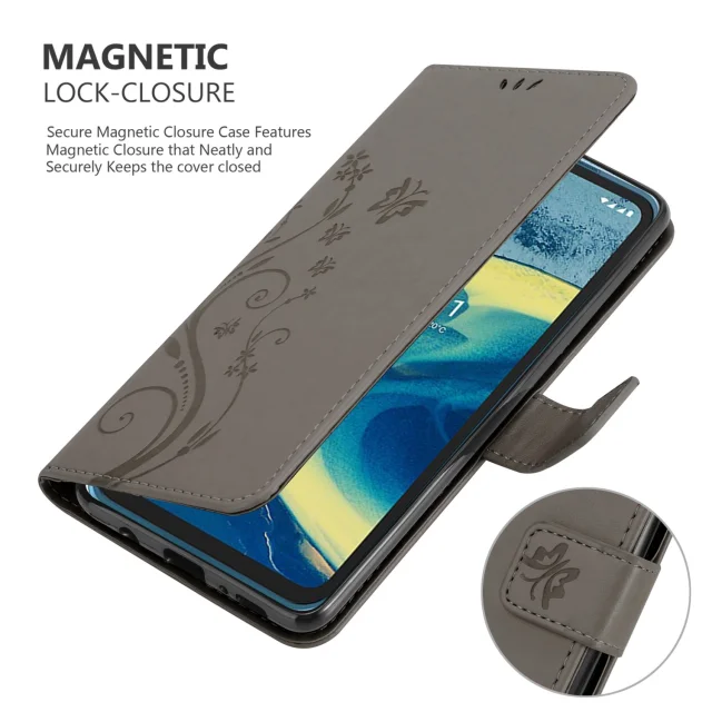 CADORABO Nokia v cvetlični sivi barvi - zaščitni pokrov v oblikovanju cvetja z magnetnim zapiranjem, stoječimi funkcijami in režami za kartice