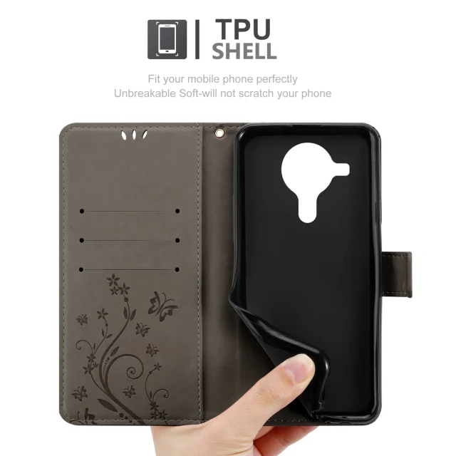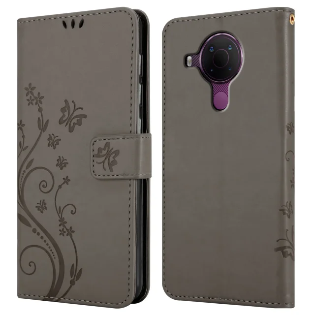 CADORABO Nokia v cvetlični sivi barvi - zaščitni pokrov v oblikovanju cvetja z magnetnim zapiranjem, stoječimi funkcijami in režami za kartice