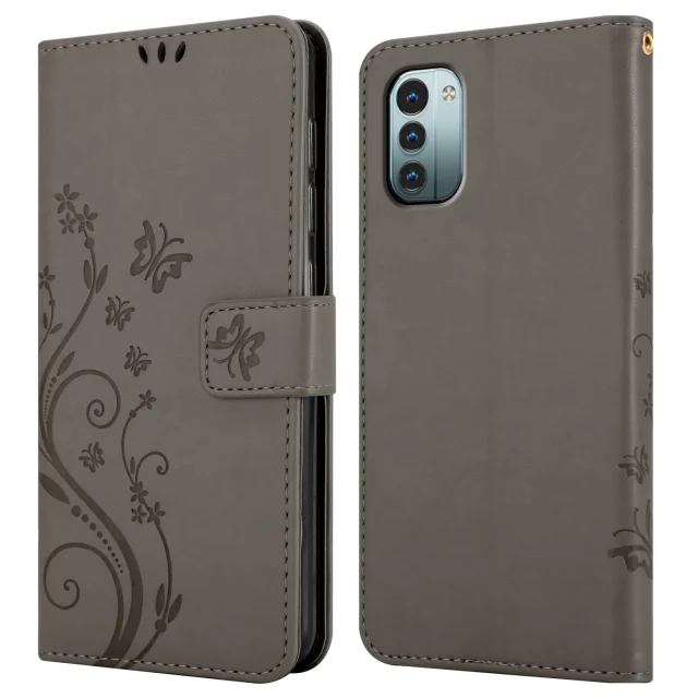 CADORABO Nokia v cvetlični sivi barvi - zaščitni pokrov v oblikovanju cvetja z magnetnim zapiranjem, stoječimi funkcijami in režami za kartice