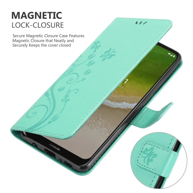 CADORABO Nokia v cvetlični turkizni - zaščitni pokrov pri oblikovanju cvetja z magnetnim zapiranjem, stoječimi funkcijami in režami za kartice