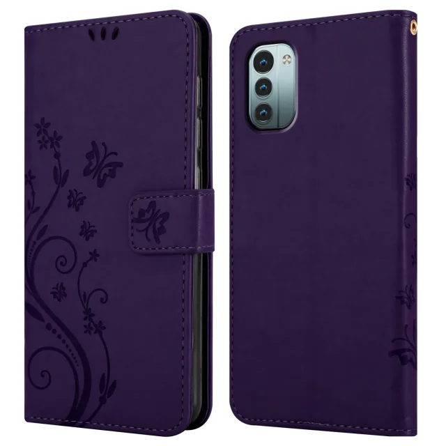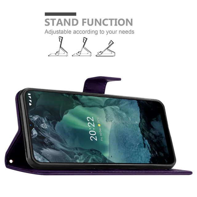 CADORABO Nokijo temno vijolična - zaščitni pokrov pri oblikovanju cvetja z magnetnim zapiranjem, stoječimi funkcijami in režami za kartice