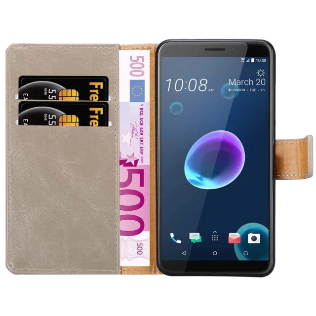 CADORABO Ohišje, združljiv s HTC v kapučino rjavi barvi - zaščitni pokrov z magnetnim zapiranjem, stoječo funkcijo in režo za kartico