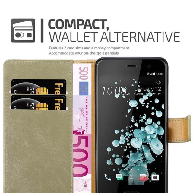 CADORABO Ohišje, združljiv s HTC v kapučino rjavi barvi - zaščitni pokrov z magnetnim zapiranjem, stoječo funkcijo in režo za kartico