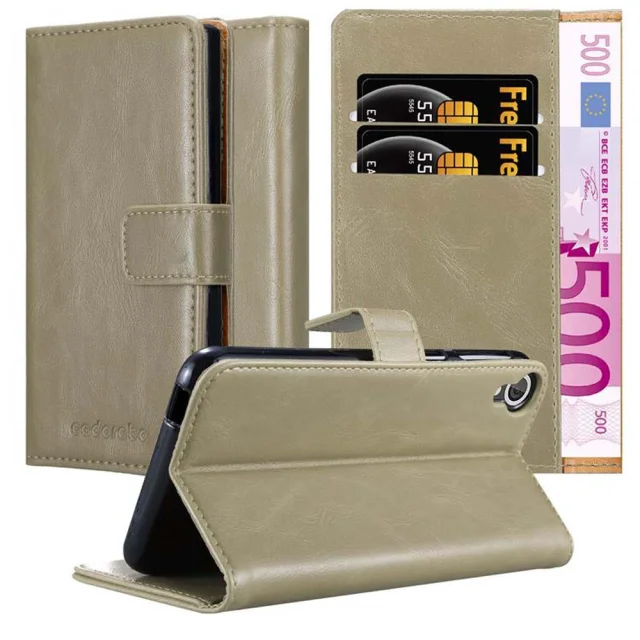 CADORABO Ohišje, združljiv s HTC v kapučino rjavi barvi - zaščitni pokrov z magnetnim zapiranjem, stoječo funkcijo in režo za kartico