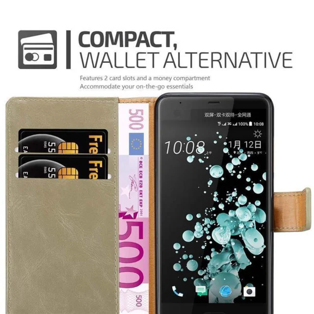 CADORABO Ohišje, združljiv s HTC v kapučino rjavi barvi - zaščitni pokrov z magnetnim zapiranjem, stoječo funkcijo in režo za kartico