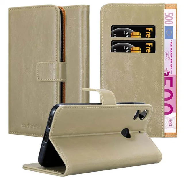 CADORABO Ohišje, združljiv s HTC v kapučino rjavi barvi - zaščitni pokrov z magnetnim zapiranjem, stoječo funkcijo in režo za kartico