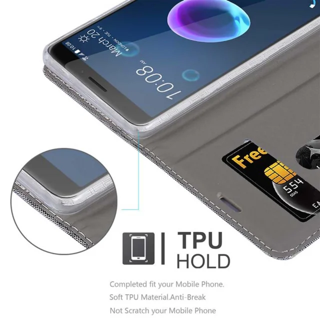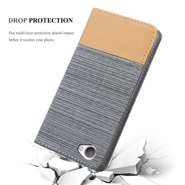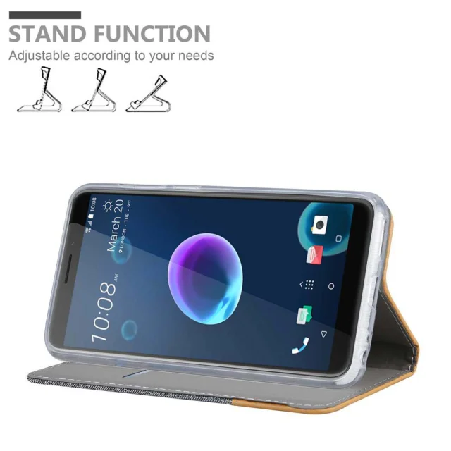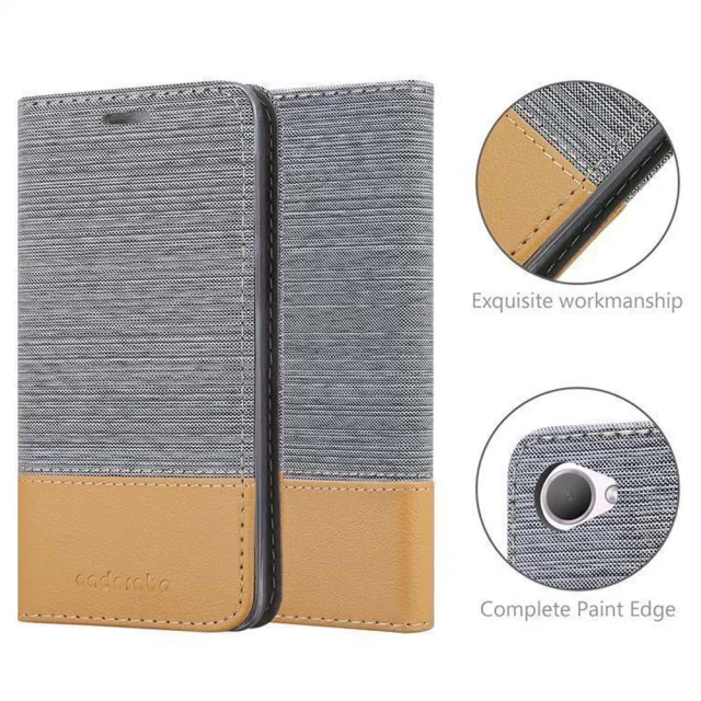 CADORABO Ohišje, združljiv s HTC v svetlo sivo rjavi barvi - zaščitni pokrov z magnetnim zapiranjem, stoječo funkcijo in režo za kartico
