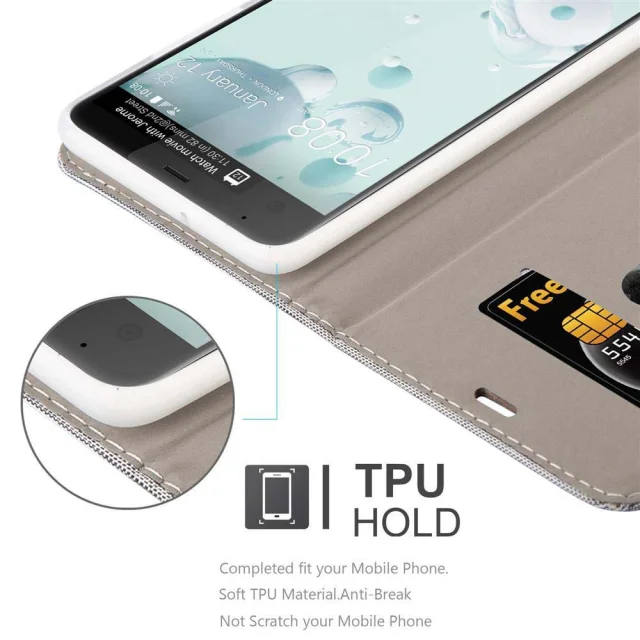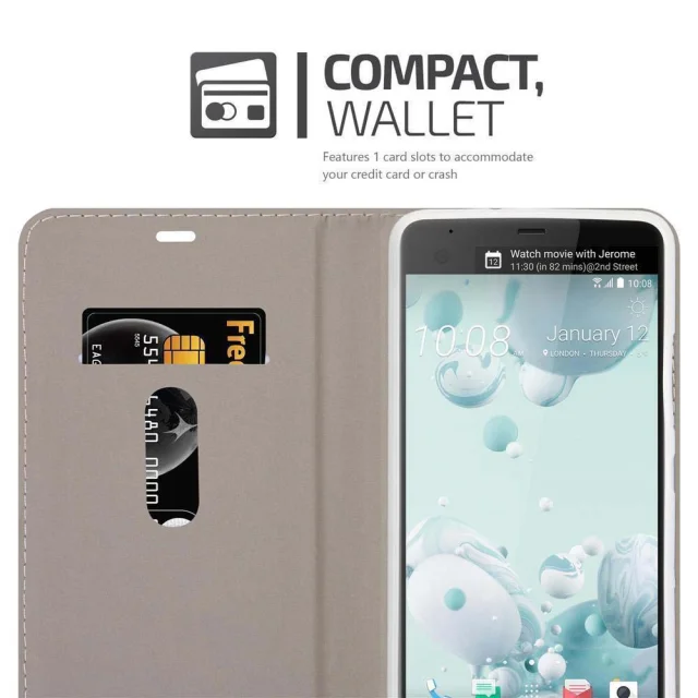 CADORABO Ohišje, združljiv s HTC v svetlo sivo rjavi barvi - zaščitni pokrov z magnetnim zapiranjem, stoječo funkcijo in režo za kartico