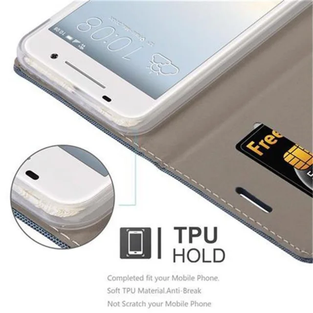 CADORABO Ohišje, združljiv s HTC v temno modri barvi - zaščitni pokrov z magnetnim zapiranjem, stoječo funkcijo in režo za kartico