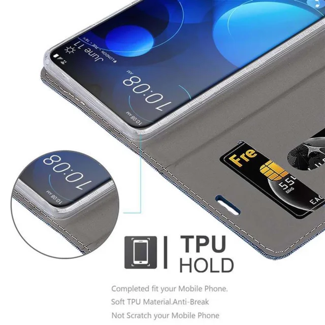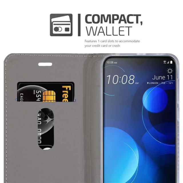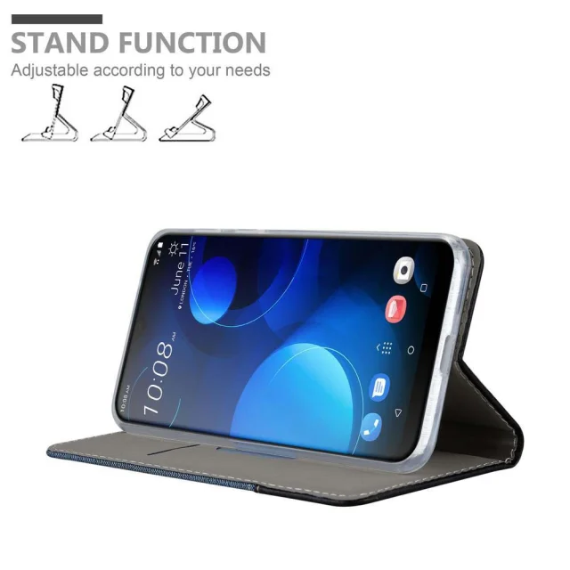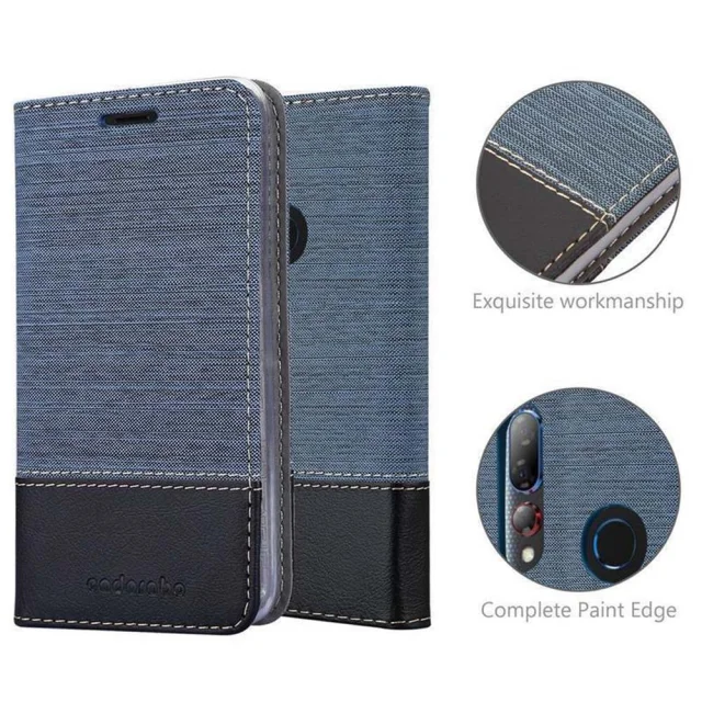 CADORABO Ohišje, združljiv s HTC v temno modri barvi - zaščitni pokrov z magnetnim zapiranjem, stoječo funkcijo in režo za kartico