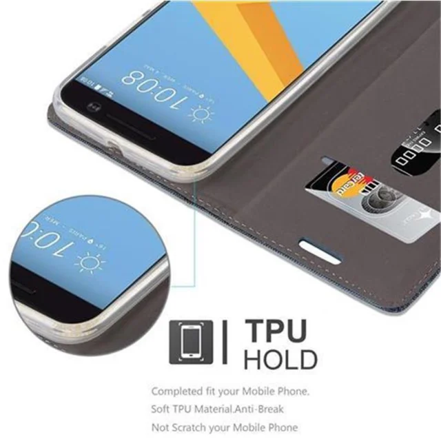 CADORABO Ohišje, združljiv s HTC v temno modri barvi - zaščitni pokrov z magnetnim zapiranjem, stoječo funkcijo in režo za kartico