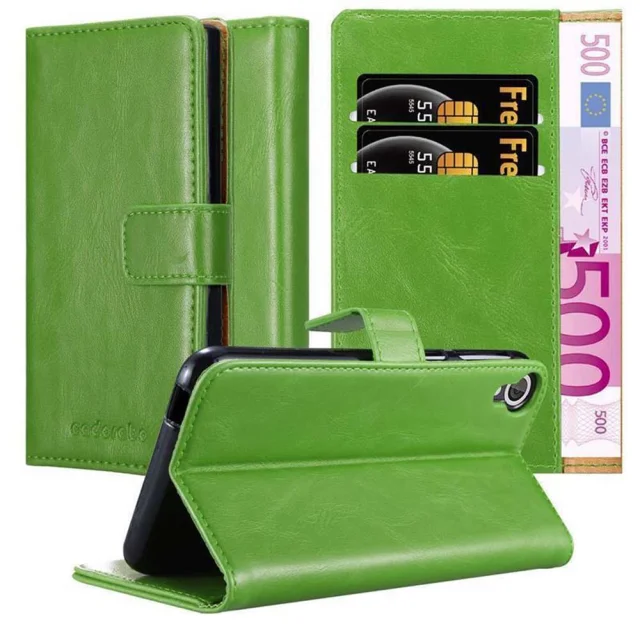 CADORABO Ohišje, združljiv s HTC v travniku Green - Zaščitni pokrov z magnetnim zapiranjem, stoječo funkcijo in režo za kartico
