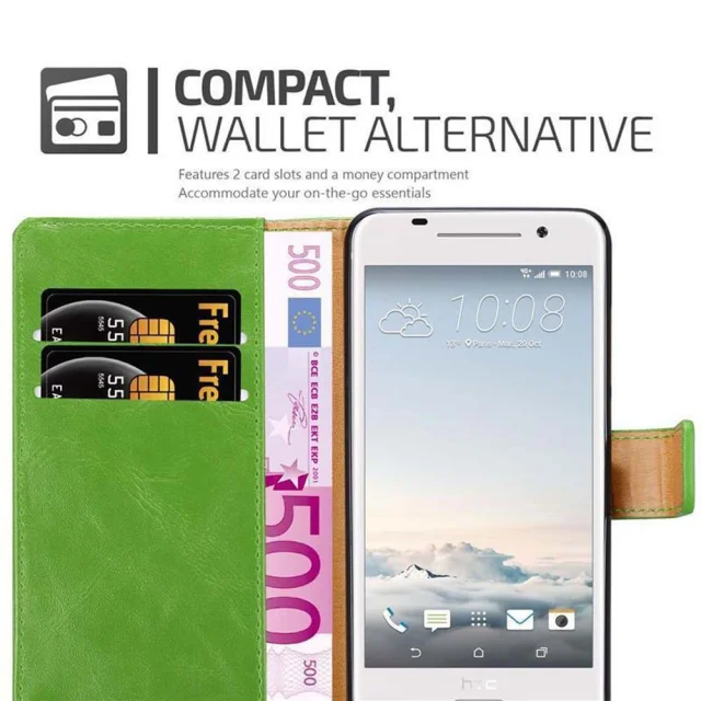 CADORABO Ohišje, združljiv s HTC v travniku Green - Zaščitni pokrov z magnetnim zapiranjem, stoječo funkcijo in režo za kartico