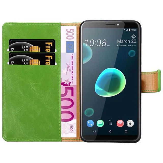 CADORABO Ohišje, združljiv s HTC v travniku Green - Zaščitni pokrov z magnetnim zapiranjem, stoječo funkcijo in režo za kartico