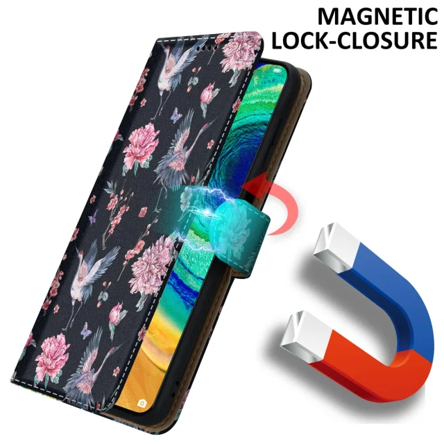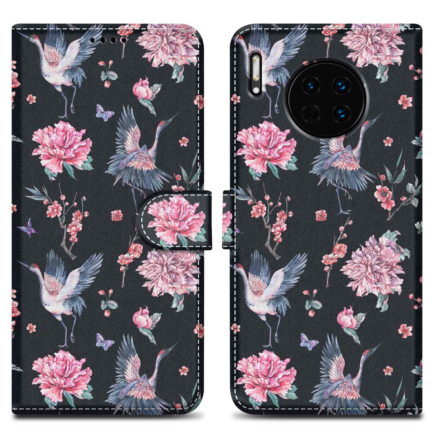 CADORABO Ohišje, združljiv s Huawei - Design Crane & Flowers št. 9 - Zaščitni pokrov z magnetnim zapiranjem, funkcijo stojala in režo za kartico