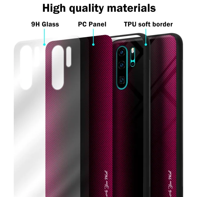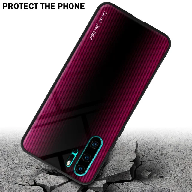 CADORABO Ohišje, združljiv s Huawei - Stripe Optics v Crimson Pink - Zaščitni pokrov iz silikona TPU in hrbta iz kaljenega stekla