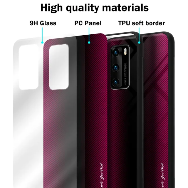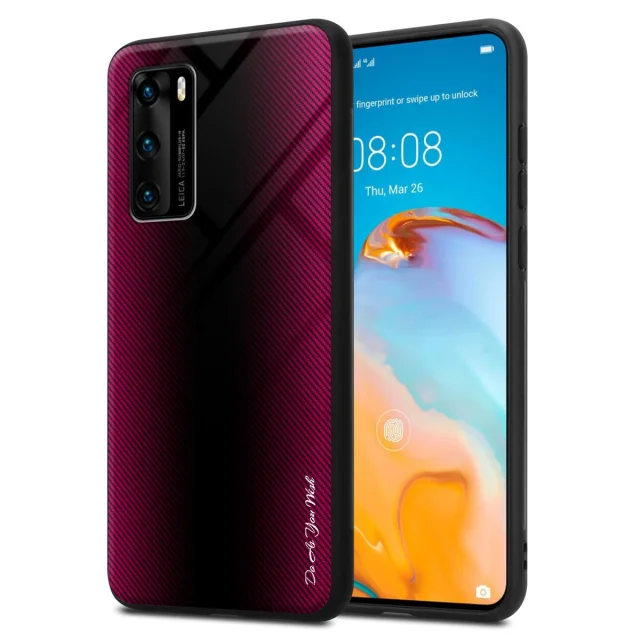 CADORABO Ohišje, združljiv s Huawei - Stripe Optics v Crimson Pink - Zaščitni pokrov iz silikona TPU in hrbta iz kaljenega stekla