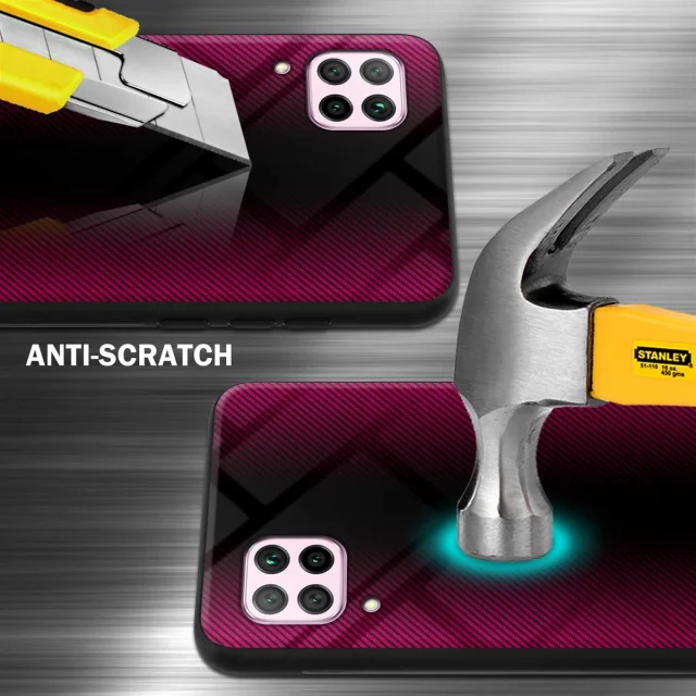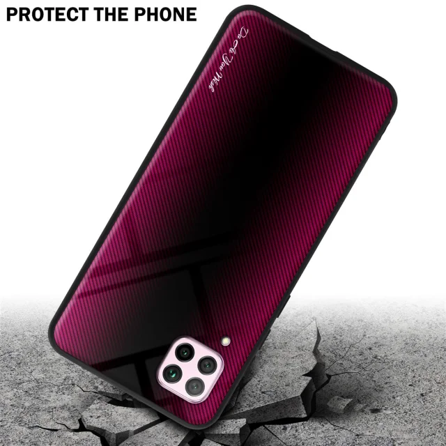 CADORABO Ohišje, združljiv s Huawei - Stripe Optics v Crimson Pink - Zaščitni pokrov iz silikona TPU in hrbta iz kaljenega stekla