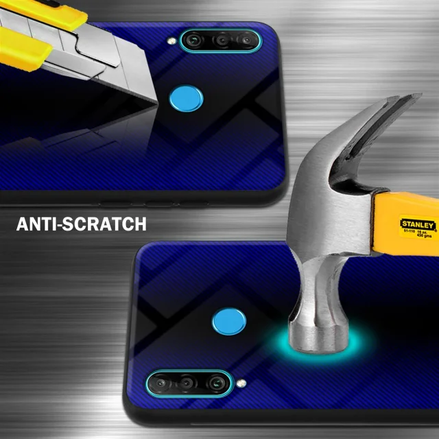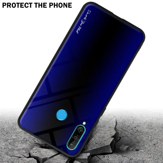 CADORABO Ohišje, združljiv s Huawei - Stripe Optics v kobaltu vijolični - zaščitni pokrov iz silikona TPU in hrbet iz kaljenega stekla