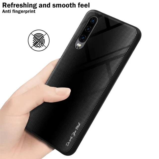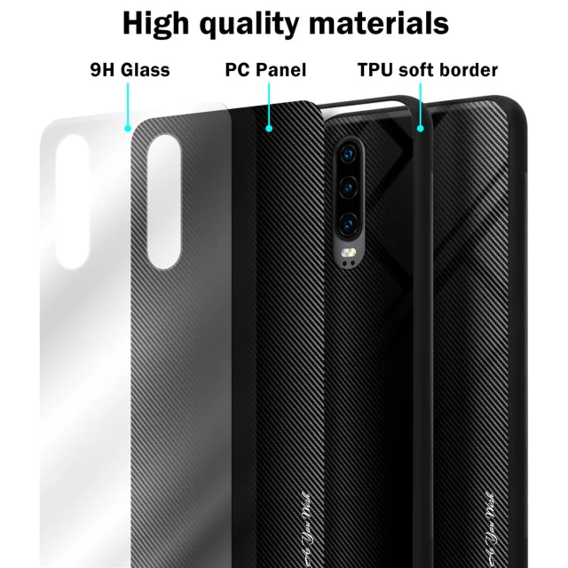 CADORABO Ohišje, združljiv s Huawei - Stripe Optics v Opal Black - Zaščitni pokrov iz silikona TPU in hrbta iz kaljenega stekla