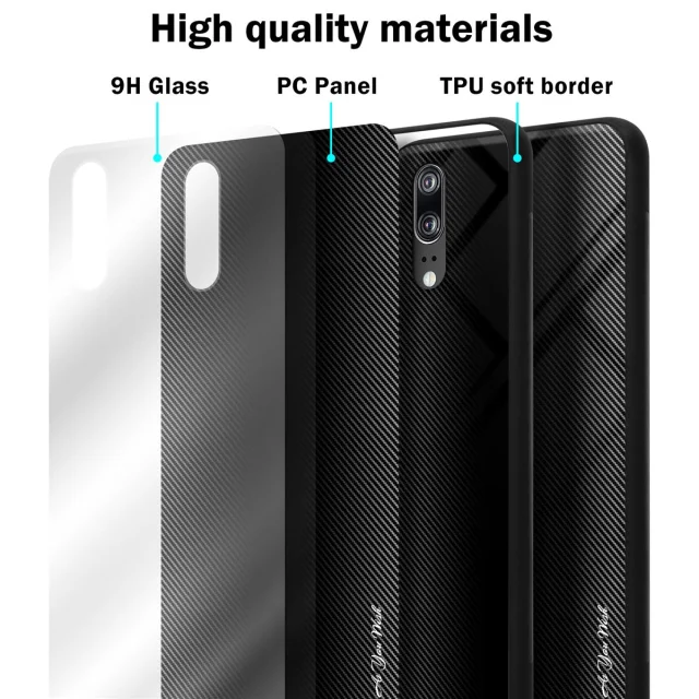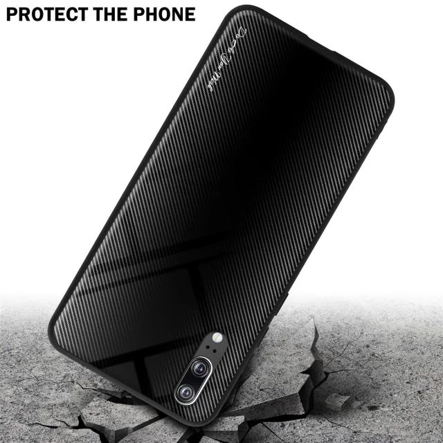CADORABO Ohišje, združljiv s Huawei - Stripe Optics v Opal Black - Zaščitni pokrov iz silikona TPU in hrbta iz kaljenega stekla
