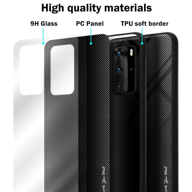 CADORABO Ohišje, združljiv s Huawei - Stripe Optics v Opal Black - Zaščitni pokrov iz silikona TPU in hrbta iz kaljenega stekla
