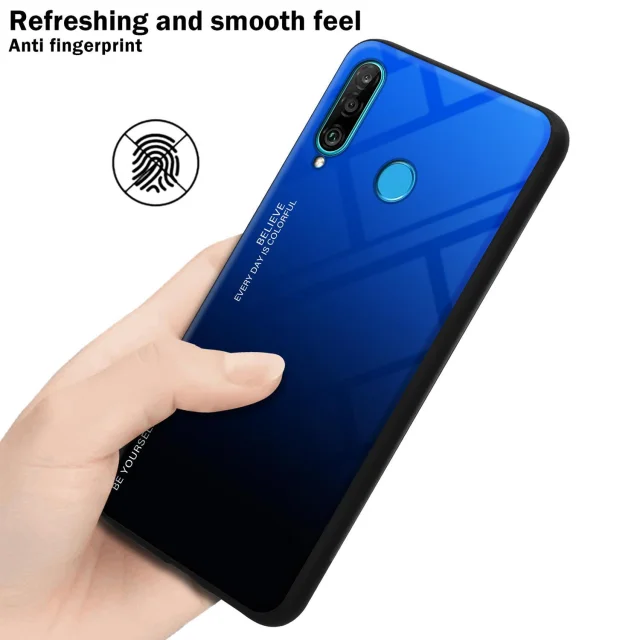 CADORABO Ohišje, združljiv s Huawei v modri barvi - črni - dvobarvni zaščitni pokrov iz silikona TPU in hrbta iz kaljenega stekla