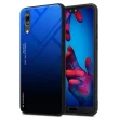 CADORABO Ohišje, združljiv s Huawei v modri barvi - črni - dvobarvni zaščitni pokrov iz silikona TPU in hrbta iz kaljenega stekla