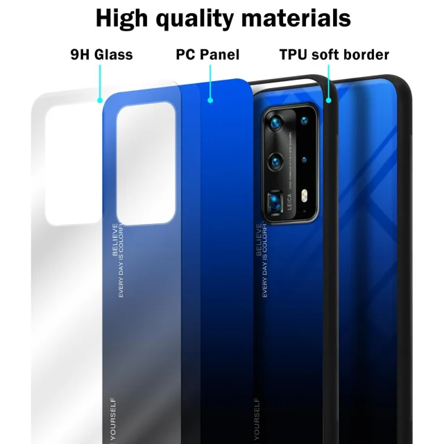 CADORABO Ohišje, združljiv s Huawei v modri barvi - črni - dvobarvni zaščitni pokrov iz silikona TPU in hrbta iz kaljenega stekla