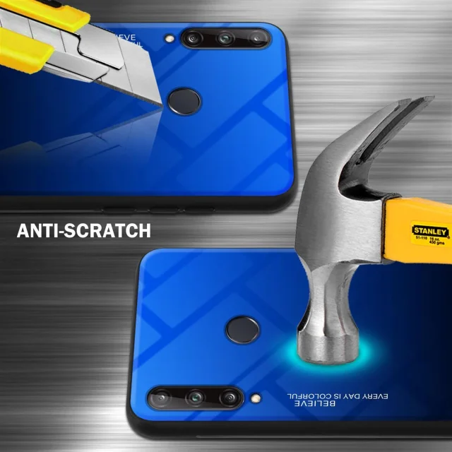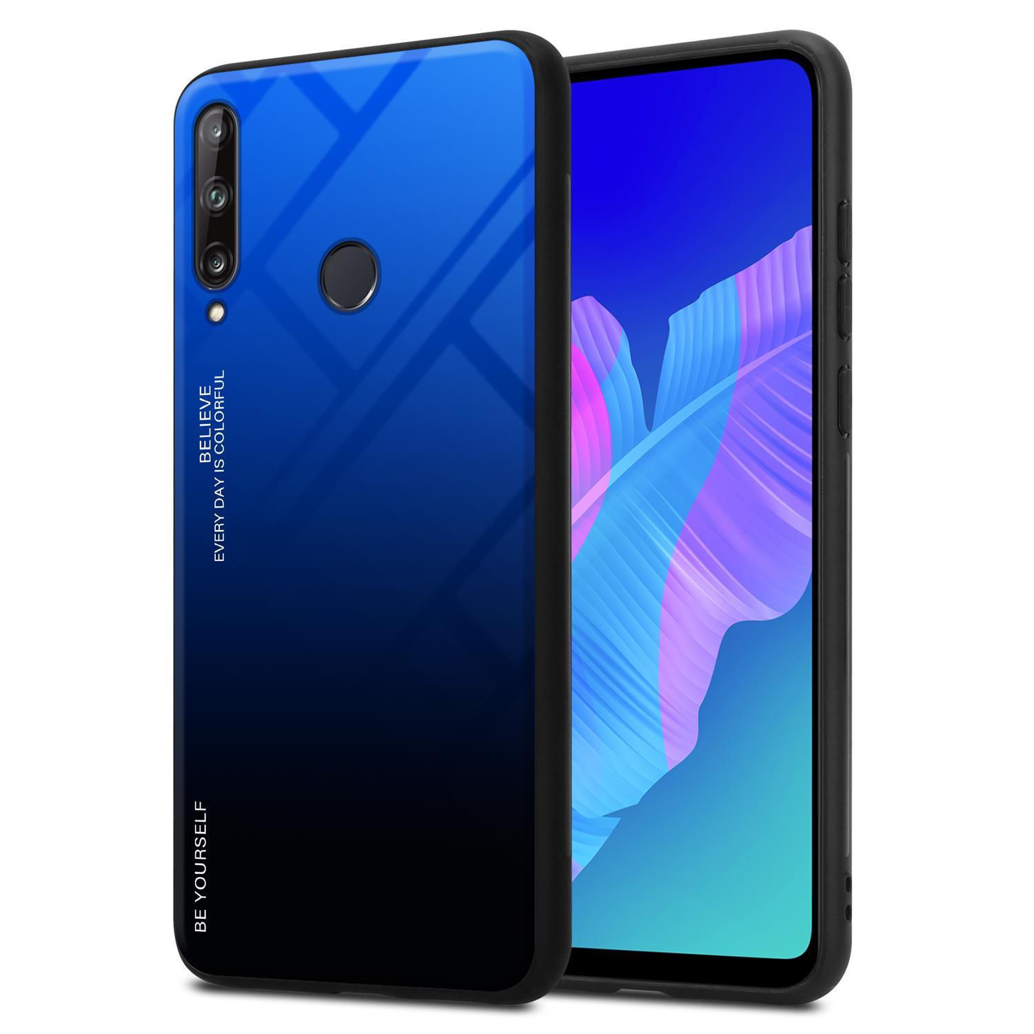 CADORABO Ohišje, združljiv s Huawei v modri barvi - črni - dvobarvni zaščitni pokrov iz silikona TPU in hrbta iz kaljenega stekla