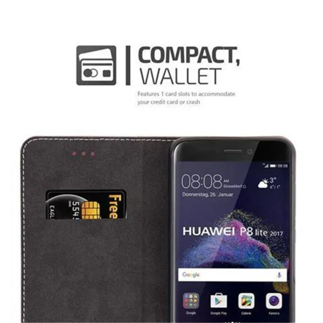 CADORABO Ohišje, združljiv s Huawei v rose Gold Black - Zaščitni pokrov z magnetnim zapiranjem, stoječo funkcijo in režo za kartico