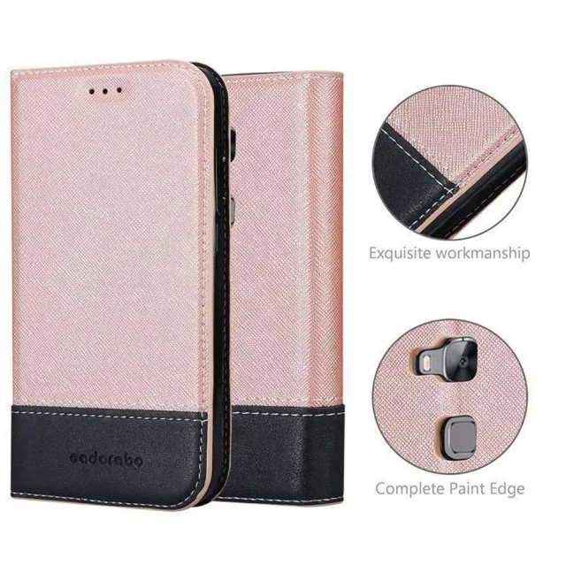 CADORABO Ohišje, združljiv s Huawei v rose Gold Black - Zaščitni pokrov z magnetnim zapiranjem, stoječo funkcijo in režo za kartico