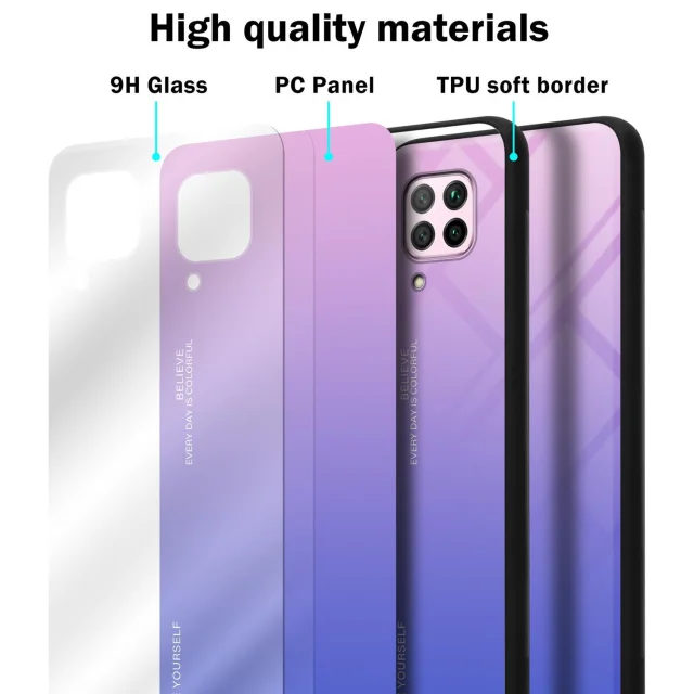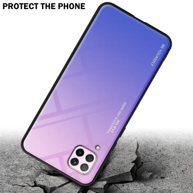 CADORABO Ohišje, združljiv s Huawei v roza - modri - dvobarvni zaščitni pokrov iz silikona TPU in hrbta iz kaljenega stekla