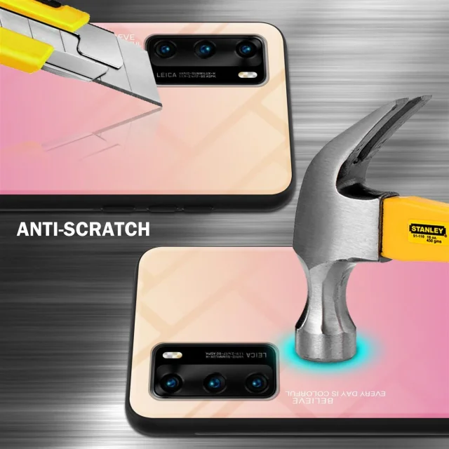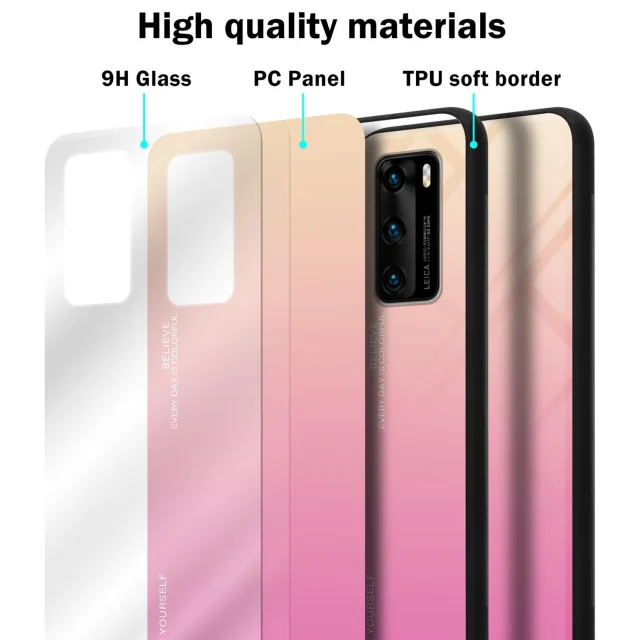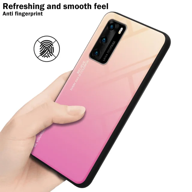 CADORABO Ohišje, združljiv s Huawei v rumeni - roza - dvobarvni zaščitni pokrov iz silikona TPU in hrbta iz kaljenega stekla