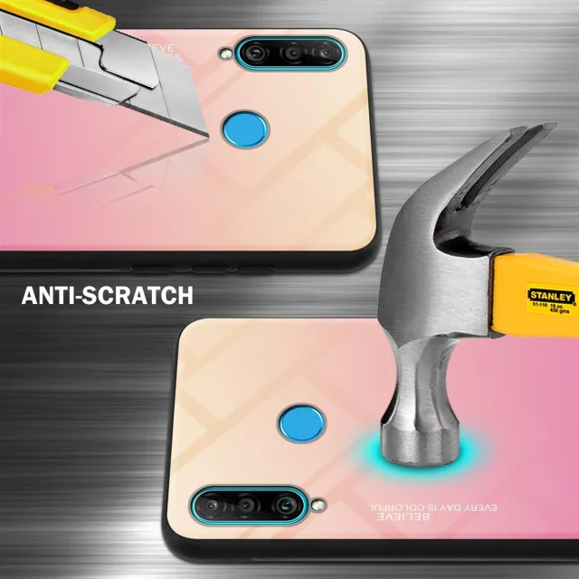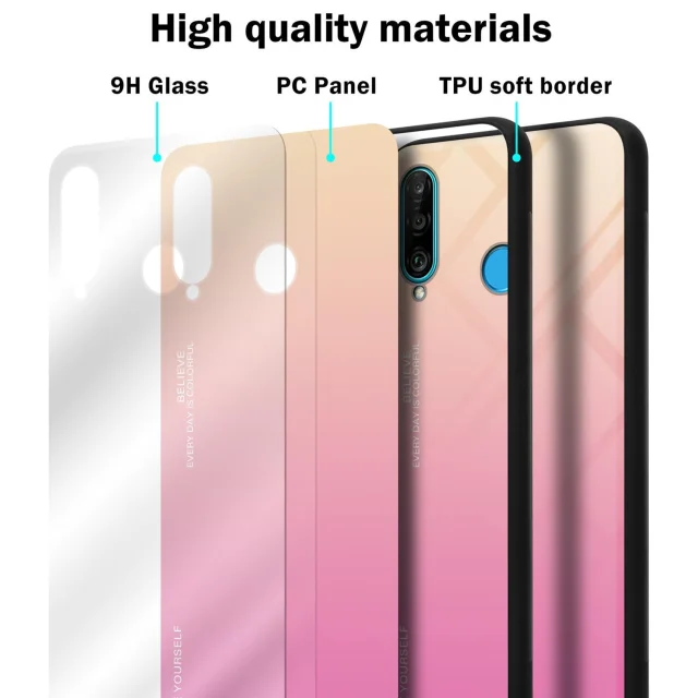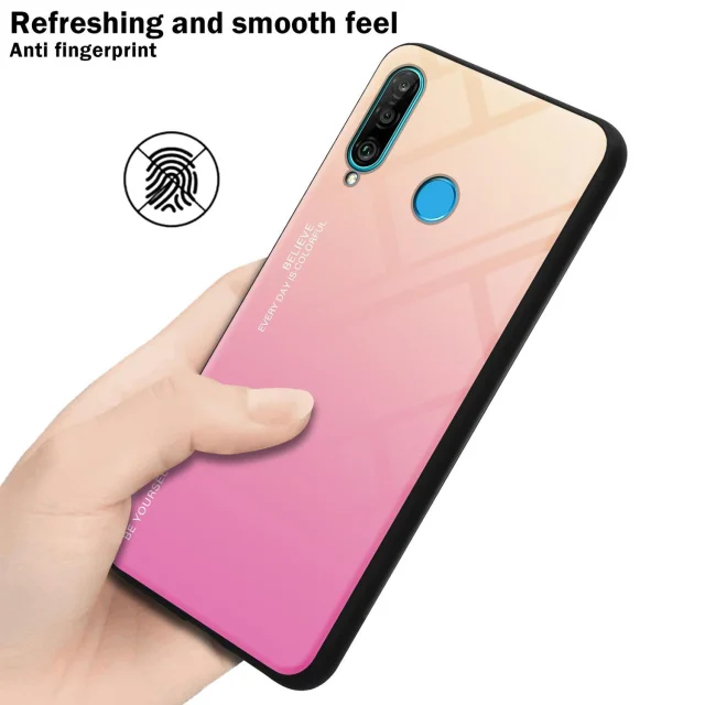 CADORABO Ohišje, združljiv s Huawei v rumeni - roza - dvobarvni zaščitni pokrov iz silikona TPU in hrbta iz kaljenega stekla