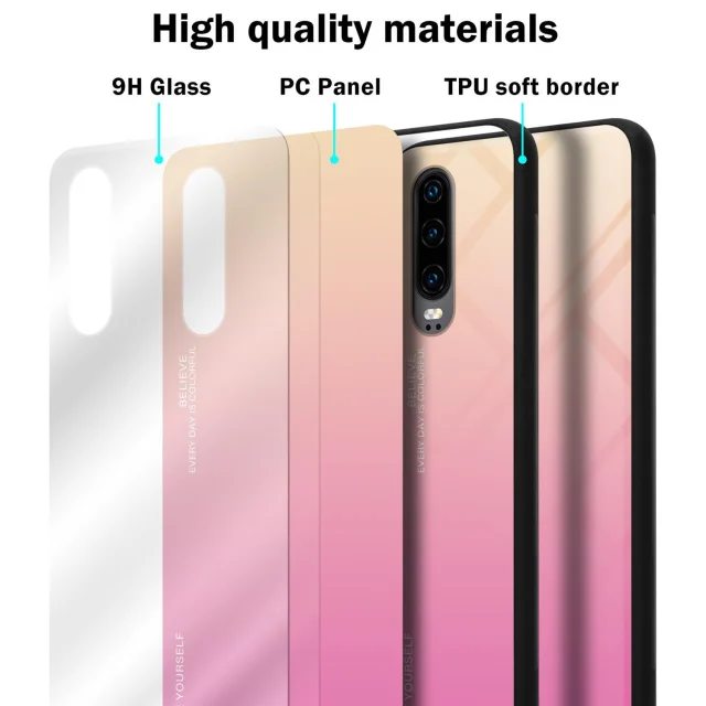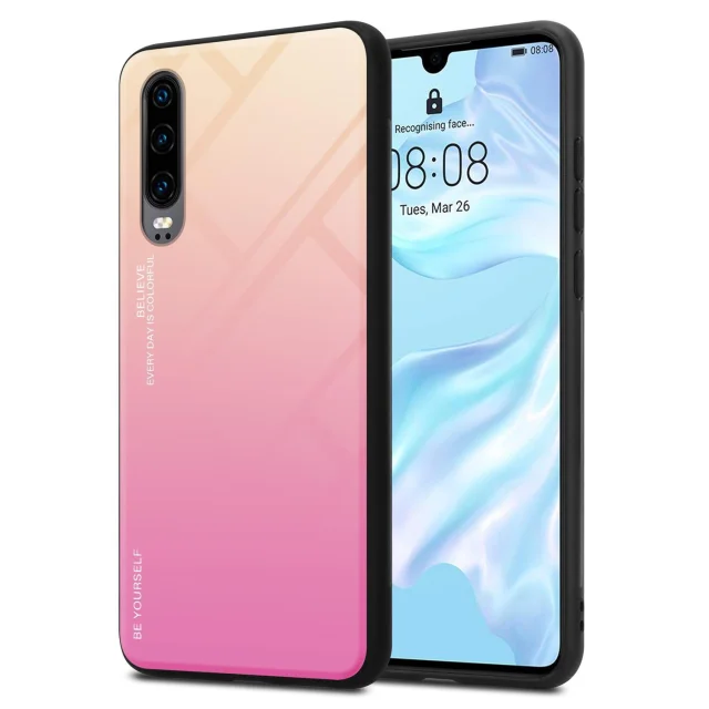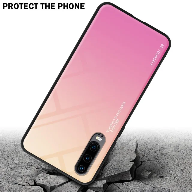 CADORABO Ohišje, združljiv s Huawei v rumeni - roza - dvobarvni zaščitni pokrov iz silikona TPU in hrbta iz kaljenega stekla