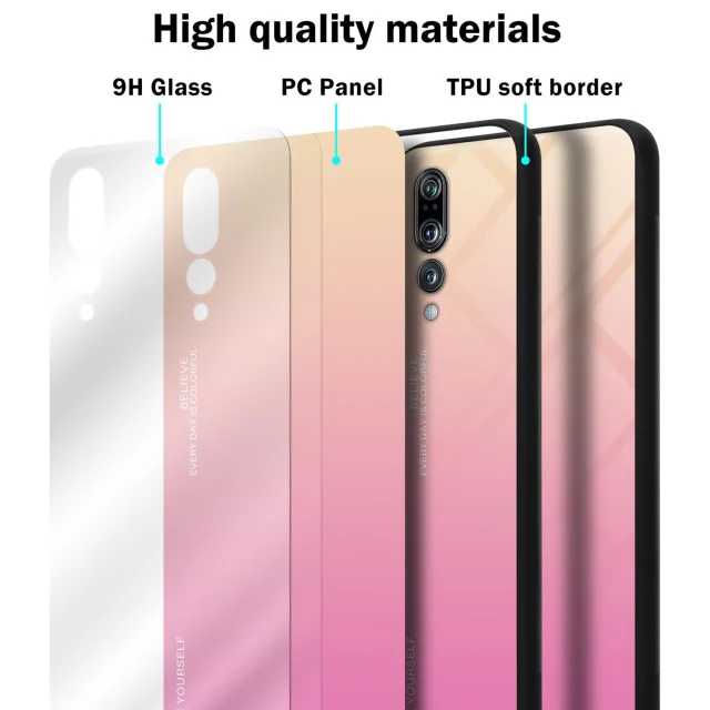 CADORABO Ohišje, združljiv s Huawei v rumeni - roza - dvobarvni zaščitni pokrov iz silikona TPU in hrbta iz kaljenega stekla