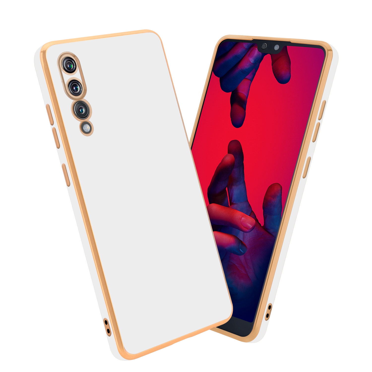 CADORABO Ohišje, združljiv s Huawei v sijajnem belem - zlatu - zaščitni pokrov iz fleksibilnega silikona TPU in z zaščito pred kamero