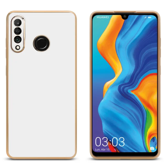 CADORABO Ohišje, združljiv s Huawei v sijajnem belem - zlatu - zaščitni pokrov iz fleksibilnega silikona TPU in z zaščito pred kamero