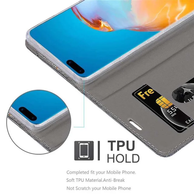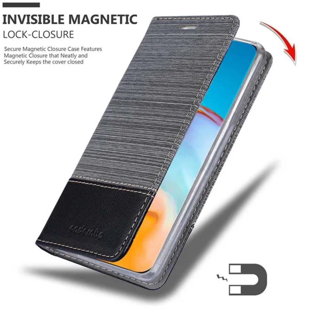 CADORABO Ohišje, združljiv s Huawei v sivi črni barvi - zaščitni pokrov z magnetnim zapiranjem, stoječo funkcijo in režo za kartico