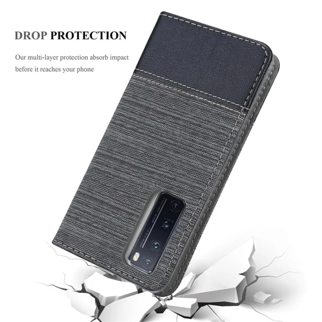 CADORABO Ohišje, združljiv s Huawei v sivi črni barvi - zaščitni pokrov z magnetnim zapiranjem, stoječo funkcijo in režo za kartico