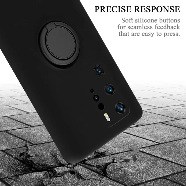 CADORABO Ohišje, združljiv s Huawei v tekoči črni barvi - zaščitni pokrov iz fleksibilnega silikona TPU z obročem